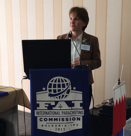 We then moved on to the report from the new Committee for Speed Skydiving. Elisabet Mikaelsson presented as Chair of the Committee and asked delegates to refer to her reports including in the Agenda papers.